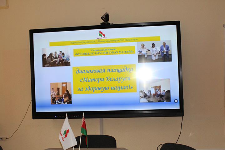 Продолжилась встреча в формате диалоговой площадки «Матери Беларуси за здоровую нацию!». В работе площадки приняли участие: заместитель главы администрации Партизанского района г. Минска Людмила Филиппович, председатель Партизанской районной г. Минска организации РОО «Белая Русь», психолог ГУ «Территориальный центр социальной защиты и обслуживания населения» Татьяна Ковалевская, телеведущая Юлия Артюх.