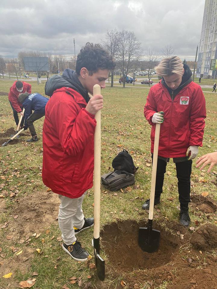Активисты Партизанского РК ОО «БРСМ» г.Минска приняли участие в закладке аллеи Единства из 40 саженцев рябины на ул. Крупской. Эту разновидность саженцев выбрали потому, что плодами рябины могут полакомиться пернатые. По традиции каждое дерево будут высаживать ребята, им помогут девушки, которые также украсят их сердцами и ленточками государственных цветов, что будет символизировать целостность и единство нашего государства.