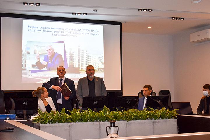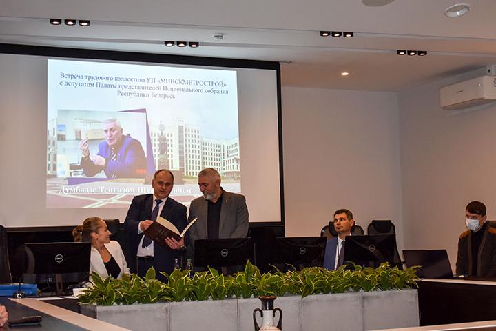 3 ноября 2021 года состоялась встреча трудового коллектива УП "МИНСКМЕТРОСТРОЙ" с депутатом Палаты представителей Национального собрания Республики Беларусь Тенгизом Шукриевичем Думбадзе.