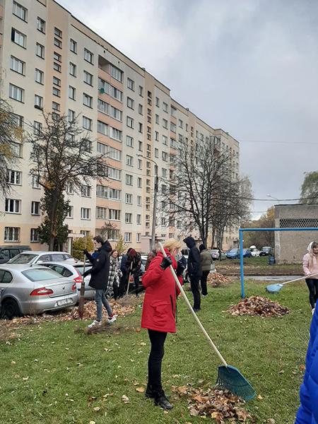 В рамках проведения месячника по уборке и благоустройству дворовых территорий жилых домов Партизанского района г.Минска, КУП "ЖКХ Партизанского района", подрядными организациями с участием учащихся, а также граждан выполнялись работы по выгребанию опавшей листвы и посадке древесно-кустарниковых растений. За период проведения месячника было вывезено 1076,8 м3 листвы, привлечено 52 единицы техники, убрано 169,3 га дворовой территории, высажено 250 шт. деревьев и 761 шт. кустарников.