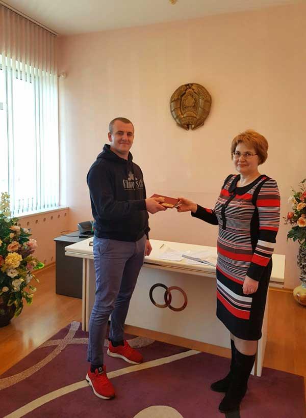 В отделе загс администрации Партизанского района г.Минска зарегистрирован 1000-ый ребёнок – Якутович Артём Вячеславович. Супругов Якутович Вячеслава Станиславовича и Елену Германовну в торжественной обстановке поздравили специалисты отдела загс.