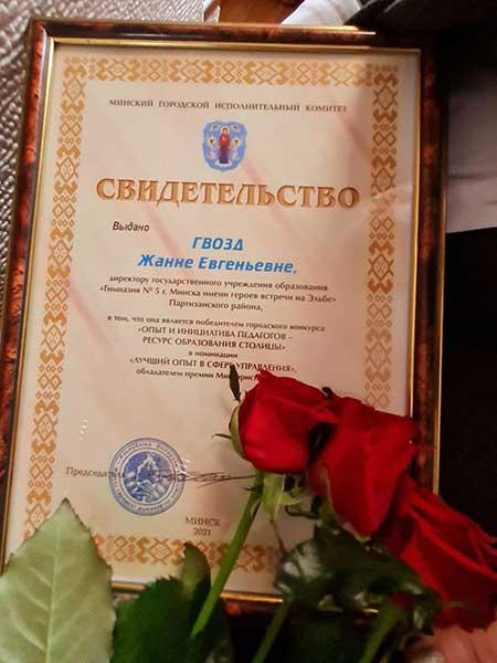 - Гвозд Жанну Евгеньевну, директора ГУО «Гимназия №5 г.Минска имени героев встречи на Эльбе».