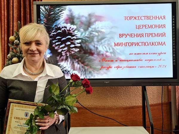 22 декабря прошла церемония вручения премий Мингорисполкома по итогам конкурса «Опыт и инициатива педагогов – ресурс образования столицы» 2021. Поздравляем победителей в номинации «Лучший опыт в сфере управления»: