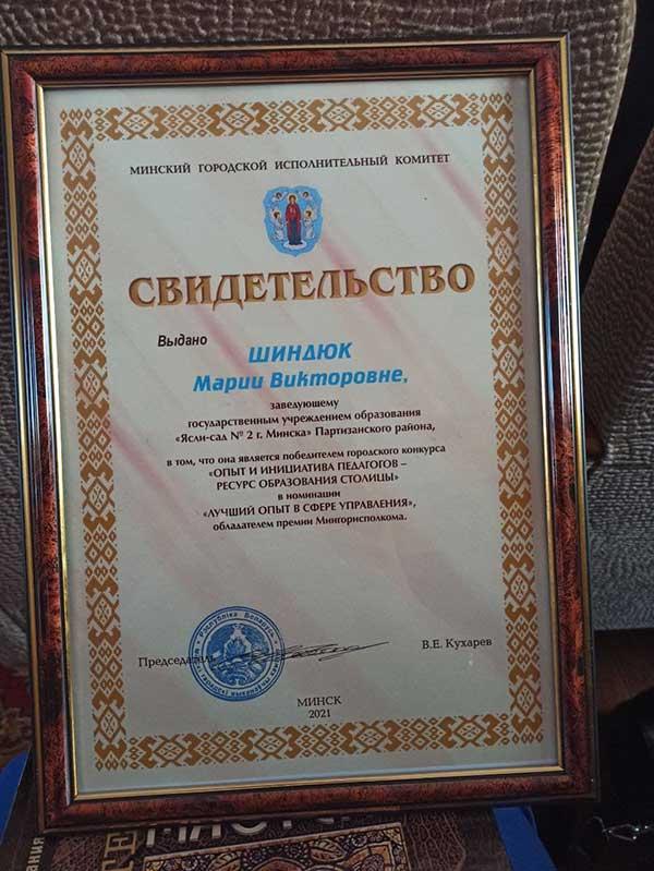 - Шиндюк Марию Викторовну, заведующего ГУО «Ясли-сад №2 г.Минска».