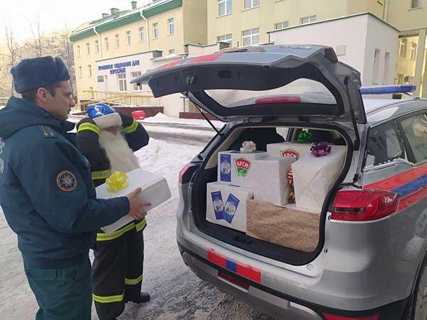 В подарках были не только канцелярские товары, настольные игры и печенье, но и огромное количество тематической продукции по формированию культуры безопасности детей и их родителей. Медицинским работникам организаторы мероприятия также пожелали здоровья и удачи в Новом году, а также поблагодарили за их нелегкий труд.