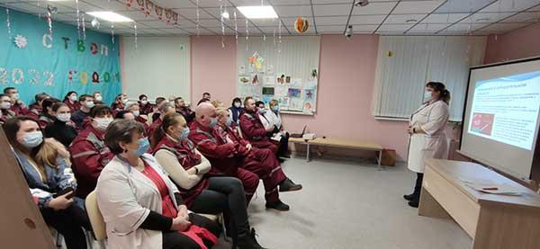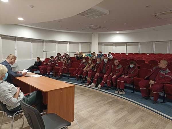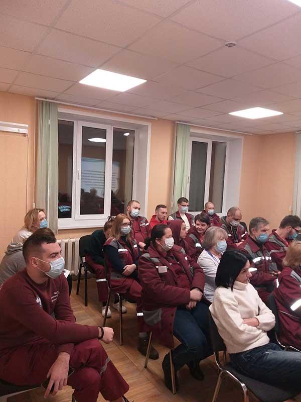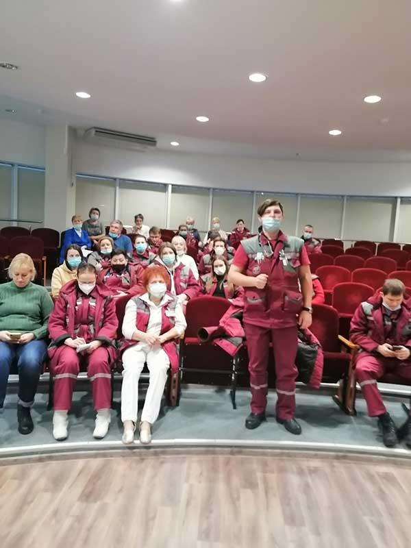 Перед трудовыми коллективами выступили главный врач Жинко А.Е., заместитель главного врача по организационно методической работе Воробей О.А., заведующие подстанциями скорой медицинской помощи, представители первичной организации профсоюза работников здравоохранения.