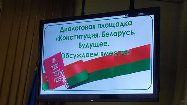 Завершилась сегодняшняя встреча в актовом зале диалоговой площадкой с участием Тенгиза Думбадзе по обсуждению проекта изменений и дополнений Конституции Республики Беларусь.
