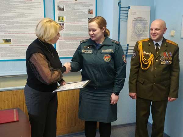 На мероприятии были вручены очередные специальные звания, а также грамоты и благодарности администрации района. Людмила Филиппович поблагодарила спасателей за качественное выполнение служебных обязанностей и задач по предупреждению и ликвидации чрезвычайных ситуаций природного и техногенного характера, пожелала крепкого здоровья, семейного благополучия и успехов в достижении намеченных целей.
