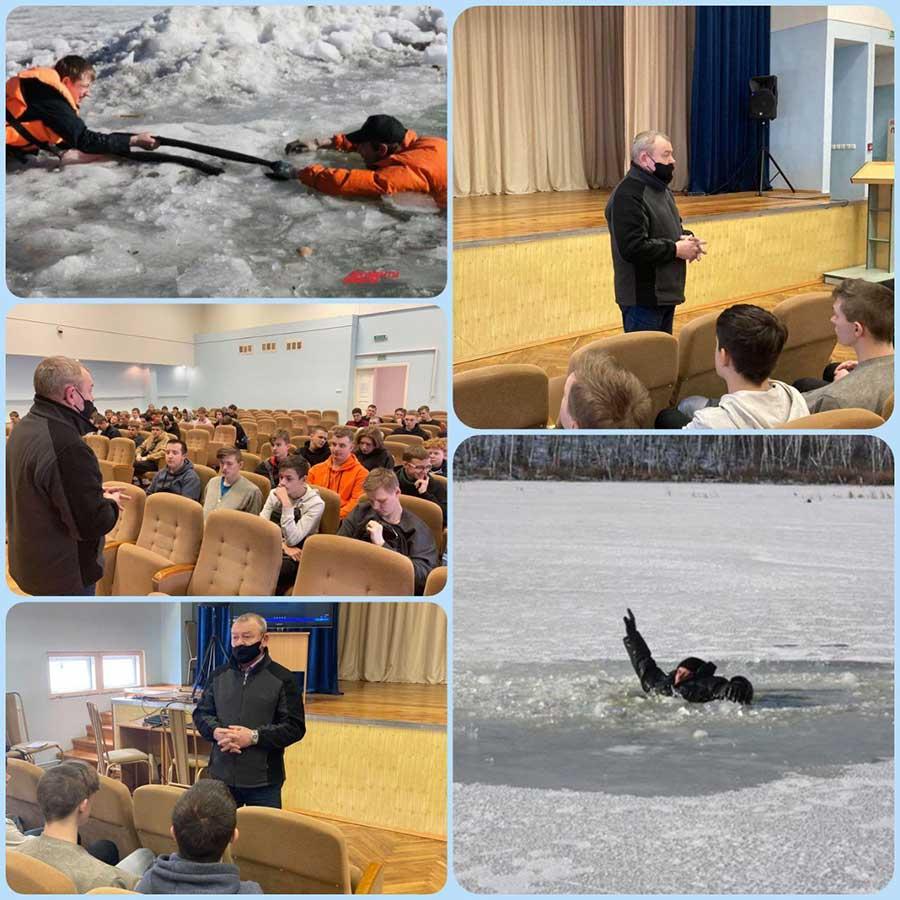 Обучающее занятие "Осторожно! На лёд не выходить!" прошло в УО "МГПЛ №14 деревообрабатывающего производства и транспортного обслуживания" 7 февраля. Гостем мероприятия стал председатель ОСВОД Партизанского района г. Минска Александр Сергеевич Калинов.