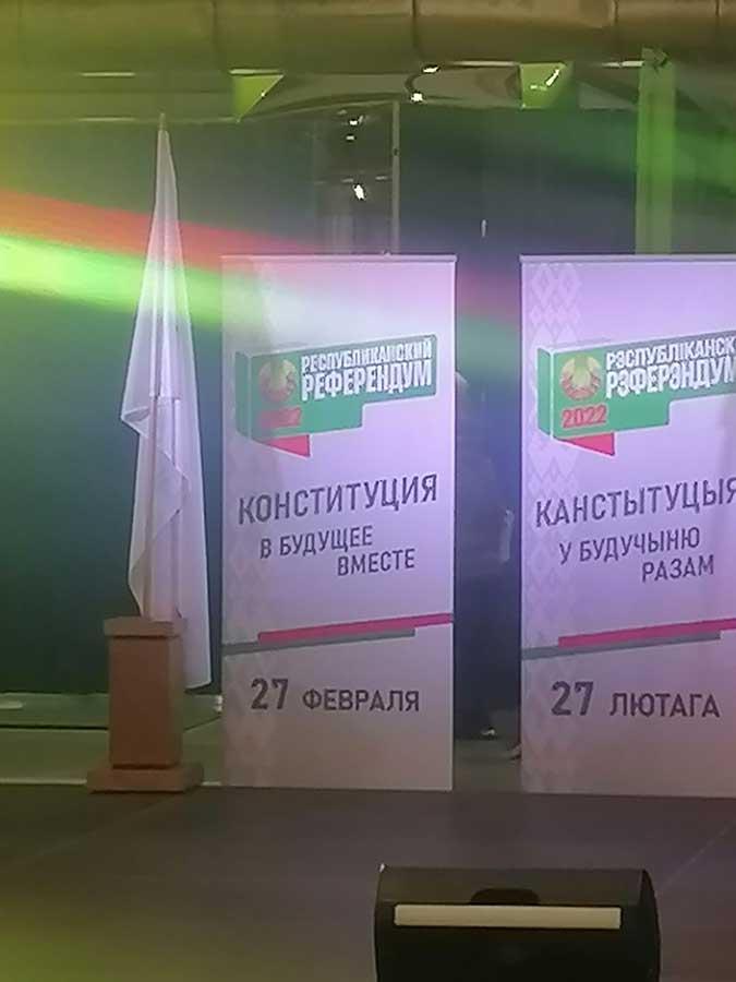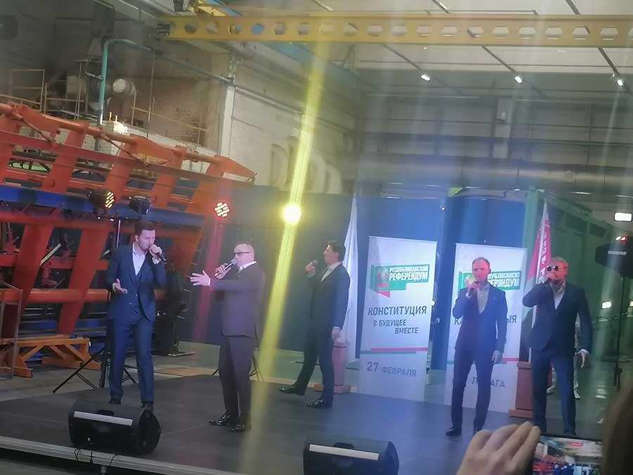В рамках культурно-патриотической акции "Будущее вместе" артисты белорусской эстрады посетили ОАО "УКХ Белкоммунмаш". Работники предприятия собрались в цеху у импровизированной сцены, обсуждая между собой вопросы, посвящённые референдуму, будущему страны и своего предприятия, с огромным удовольствием смотрели концерт. Вела мероприятие Е. Спиридович. Свои творческие номера работникам завода подарили группа "Дрозды", арт-группа "Беларусы", Жанет. Зрители встречали и провожали гостей аплодисментами, подпевали и даже танцевали под знакомые мелодии.