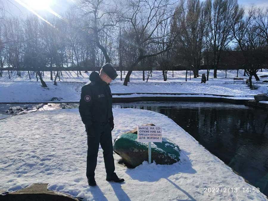 В ходе патрулирования береговой линии водоема гражданам напомнили правила безопасности, особенно актуальные в это время года: правила безопасности на льду, правила безопасности в гололед, правила безопасности в сильный мороз и действия человека в случае получения им переохлаждения.