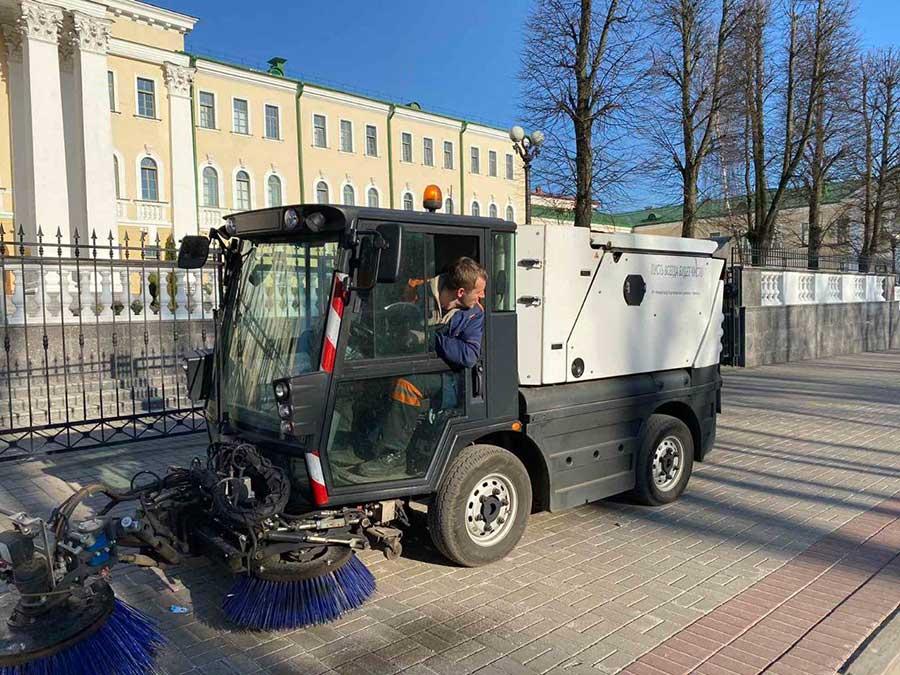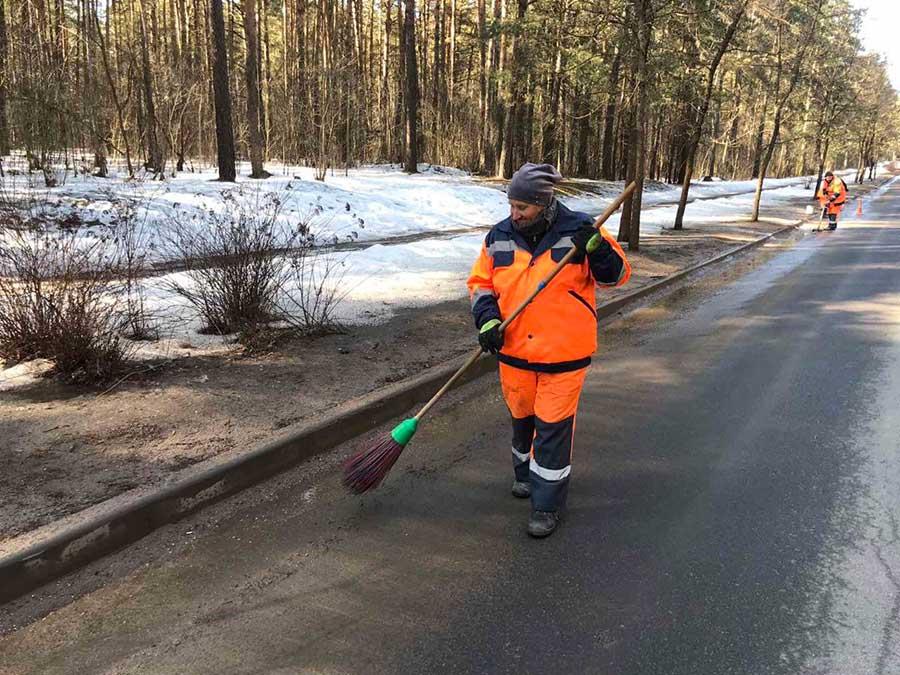 Две бригады уборщиков территории трудятся на улицах района, механизированная уборка ведётся при помощи спец. техники.