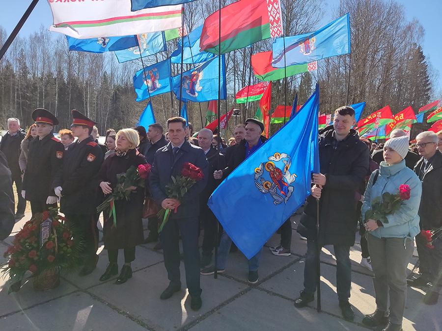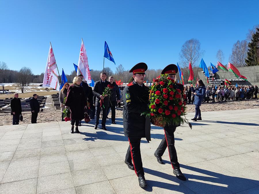 Минутой молчания и возложением корзины цветов отдели дань памяти трагической гибели жителей деревни Хатыни.