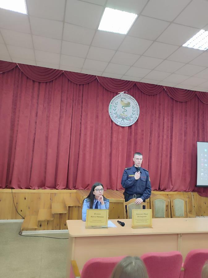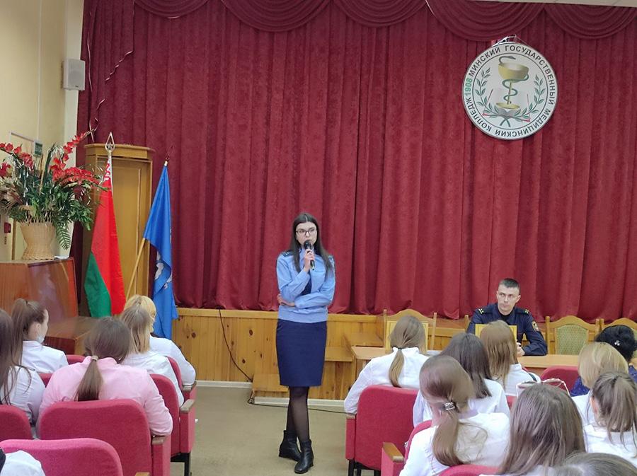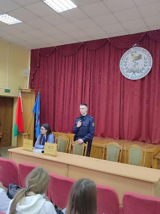 23 марта 2022г. в УО «Минский государственный медицинский колледж» в рамках проведения межведомственной республиканской профилактической акции «Вместе за здоровое будущее» для несовершеннолетних учащихся был организован открытый диалог с Листратенко Светланой Владимировной - главным специалистом отдела идеологии Администрации Партизанского района, с Ягленко Ириной Юрьевной - помощником прокурора Партизанского района г.Минска, с Ванцовичем Юрием Викторовичем - участковым инспектором инспекции по делам несовершеннолетних Партизанского РУВД г. Минска.