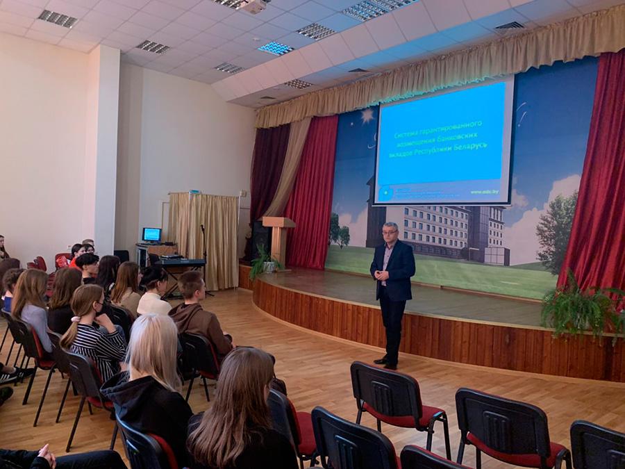 24 марта 2022 года в рамках Недели финансовой грамотности в Минском колледже предпринимательства состоялась встреча учащихся 2 и 3 курсов специальности «Банковское дело» с начальником отдела по работе с физическими лицами Агентства по гарантированному возмещению вкладов (депозитов) физических лиц Черкесом Сергеем Николаевичем.