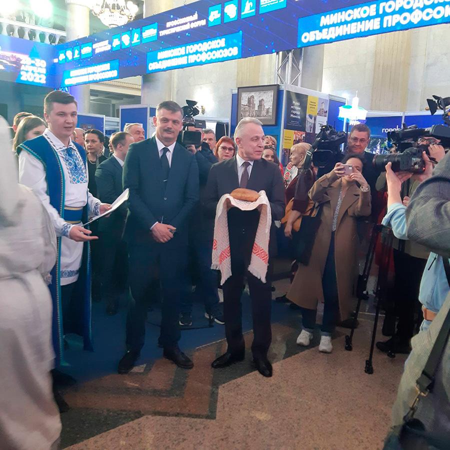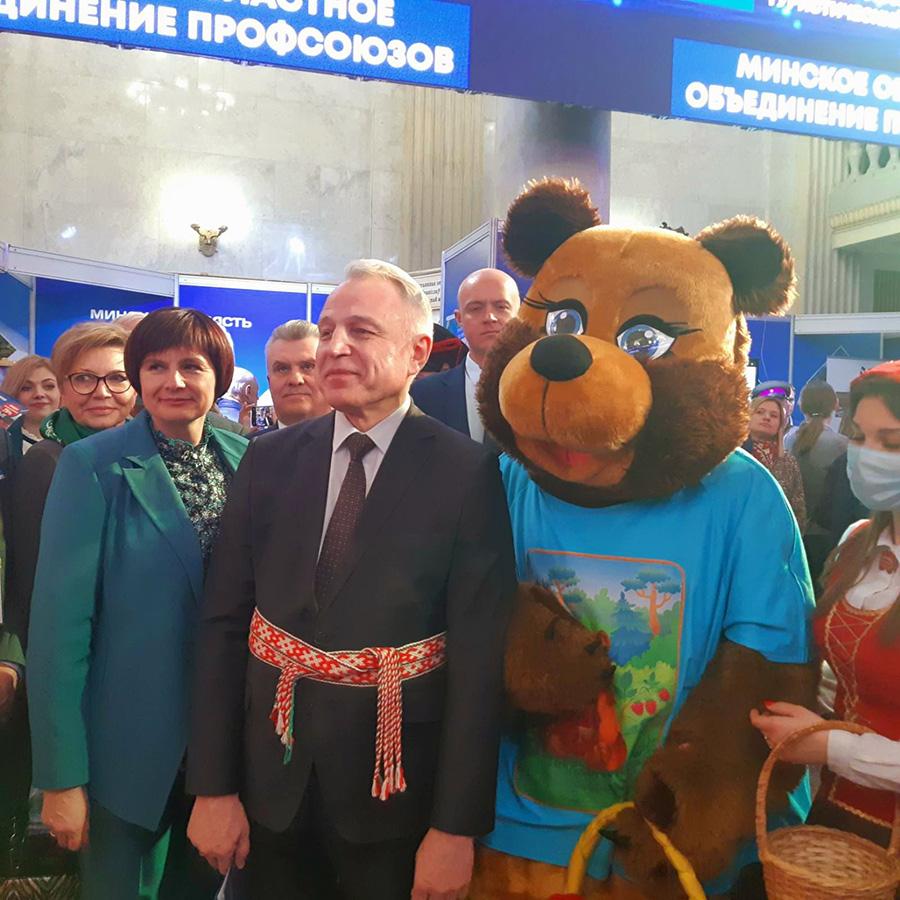 На профсоюзном туристическом форуме во Дворце культуры профсоюзов стенд Минского городского объединения профсоюзов вызвал неподдельный интерес у участников и посетителей интерактивными площадками, выставками, например, с новинками "Слодыч" и "Коммунарки", историческими костюмами из музея города Минска, голограмамми.