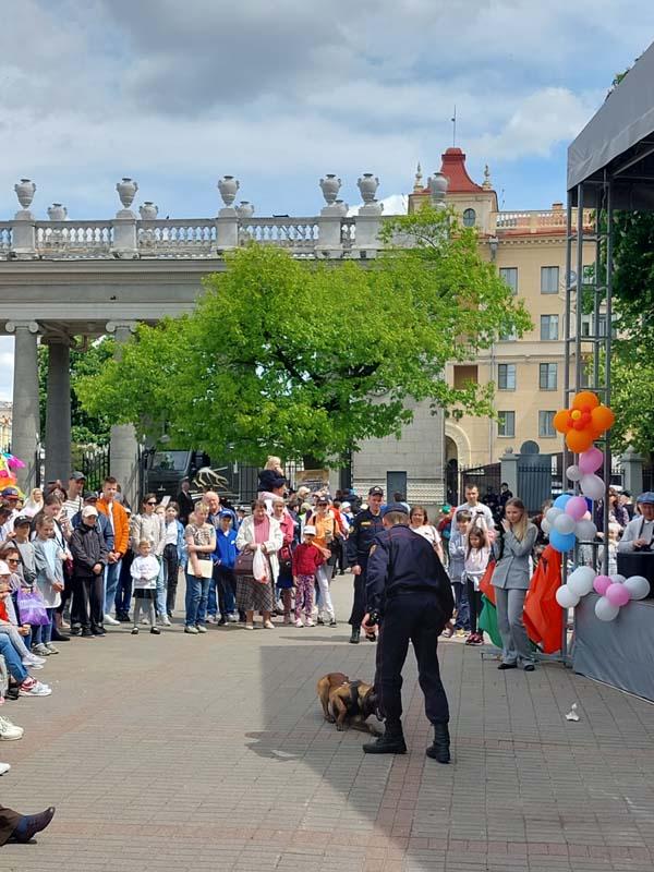 Ребят поздравил с праздником депутат Палаты представителей Национального собрания Думбадзе Тенгиз Шукриевич. На мероприятии выступили творческие коллективы «ЦДОД и М "Виктория" г.Минска», филиала ОАО «МТЗ» «Дворца культуры «МТЗ», ГУО «Детской школы искусств №2 г.Минска», а также личный состав роты специального назначения почетного караула 3-ей отдельной Краснознаменной бригады специального назначения, специалисты-кинологи питомника служебных собак Минского городского управления Департамента охраны МВД Республики Беларусь, совместно с организациями Партизанского района г.Минска и представителями городской милиции, ГАИ, МЧС и других силовых структур. На празднике были организованы игровые зоны, обучающие и тематические квесты. Праздник прошёл ярко и интересно. Хорошее настроение, заряд положительных эмоций получили дети и их родители.