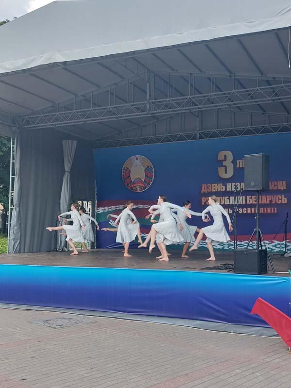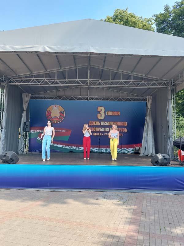 Организована была концертная программа «Горжусь тобой, я Беларусь!» с участием творческих коллективов и индивидуальных исполнителей филиала ОАО «МТЗ» Дворца культуры «МТЗ», солистов Молодёжного театра эстрады Ольги Змурщик, Никиты Фоминых, Дмитрия Сергеева, группа «Бай сити», большой интерес вызвало у зрителя выступление специалистов-кинологов и ВИА «Любимый город» Минского городского управления Департамента охраны МВД Республики Беларусь, особый восторг вызвал у детей и взрослых автомобиль «Джили»,который можно было разрисовать, кульминацией праздника стало выступление студии современного молодёжного танца «Босиком» под руководством заслуженной артистки Республик Крым Екатерины Астаповой и шоу-группы «Гуляй душа» под руководством заслуженного артиста Республики Крым Константина Пастернака.