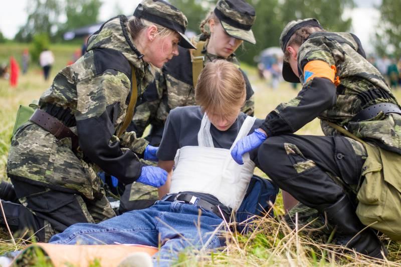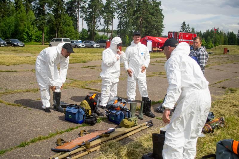 - на втором этапе санитарные формирования работали в очаге комбинированного поражения: участникам необходимо было провести дезинфекцию и оказать пострадавшим первую помощь;