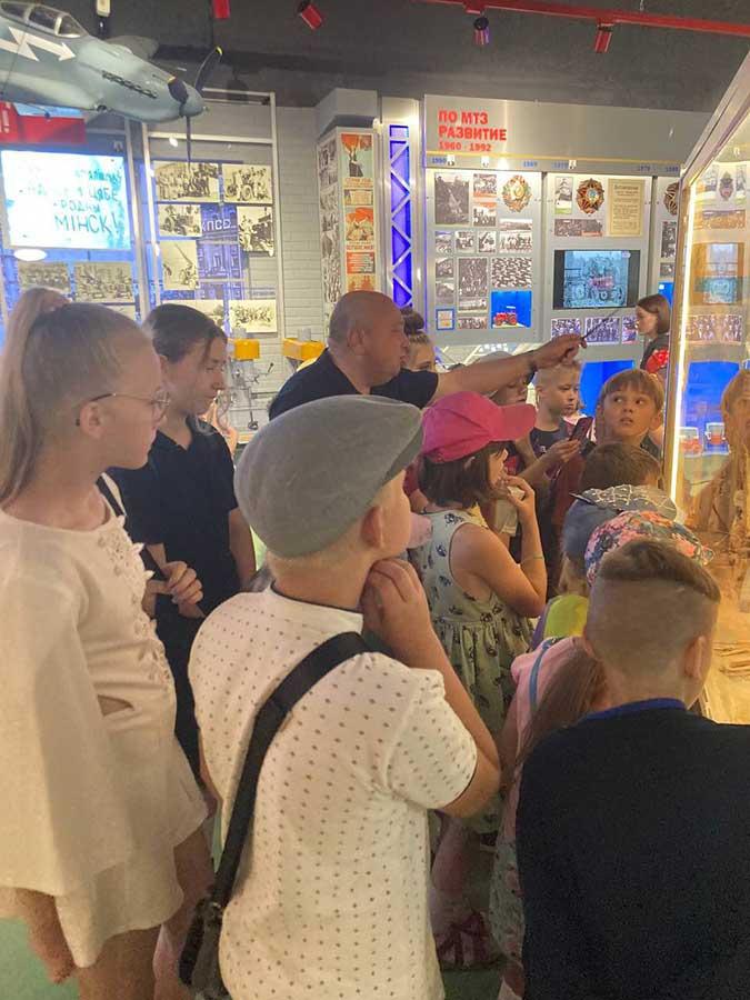 Экскурсовод музея рассказал ребятам про яркую и насыщенную событиями историю создания Минского тракторного завода, его развития и становления. Экспозиция музея включает интереснейшие подлинные исторические документы прошлого, а также современные интерактивные элементы.