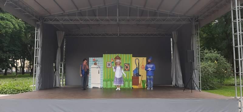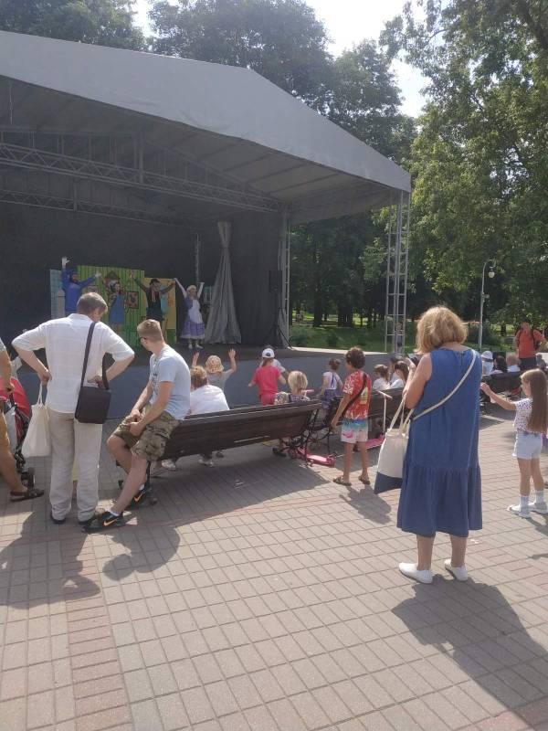 6 августа в 12.00 на главной сцене Центрального детского парка им. М.Горького состоялся спектакль-сказка для детей и взрослых «Ура! Каникулы продолжаются!». Представление подготовил и показал Народный театр «На Долгом Броде» Дворца Культуры МТЗ. Стоило артистам приехать и начать монтировать декорации, как начал собираться юный зритель, привлекая за собой своих мам, пап, бабушек и дедушек. Что может быть лучше сказки! Тем более, если смотришь её всей семьёй и в красивейшем городском парке. Всё профессионально: от костюмов и декораций до игры актёров. В музыкальном представлении много интерактива, поэтому зритель находится внутри спектакля, взаимодействует с персонажами, спасает, сопереживает, сострадает и радуется счастливому финалу. Всё, как полагается в сказке. Сюжет так захватывает юного зрителя, что ещё долго обсуждается с друзьями и родителями. Сказка и образовывает, и воспитывает, и привлекает к драматическому искусству.