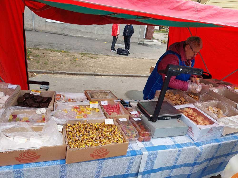 Фермеры завезли разнообразные сорта картофеля пр цене от 60 копеек, томата от 1.5 рубля, перцы от 2 рубля, предлагается баклажан- от 1.50 рубля, огурцы - от 2.50 рублей, капуста от 75 копеек, клюква - от 8 рублей и др, в широком ассортименте субпродукты, мясо и мясо продукты, свежая рыба, рыбные консервы.