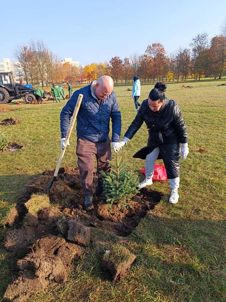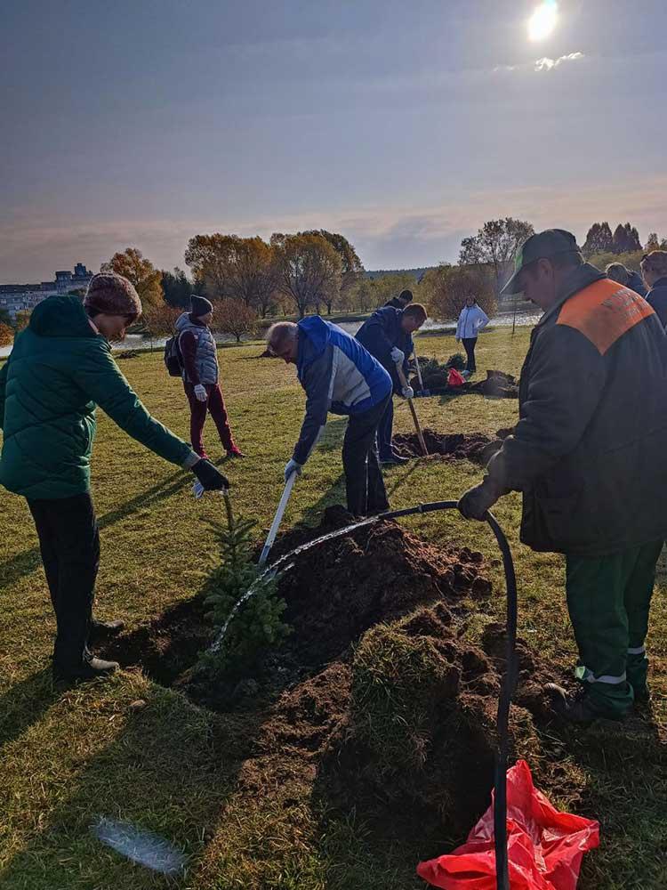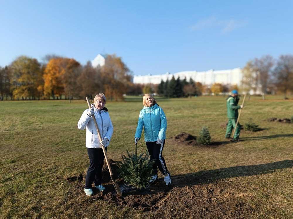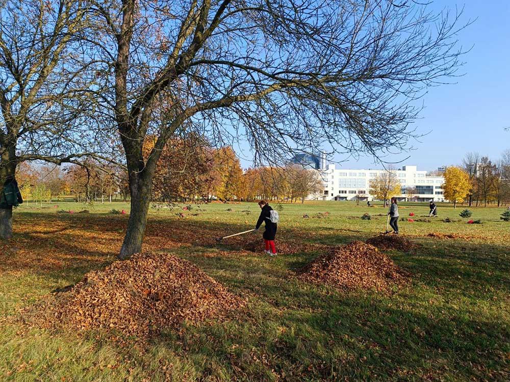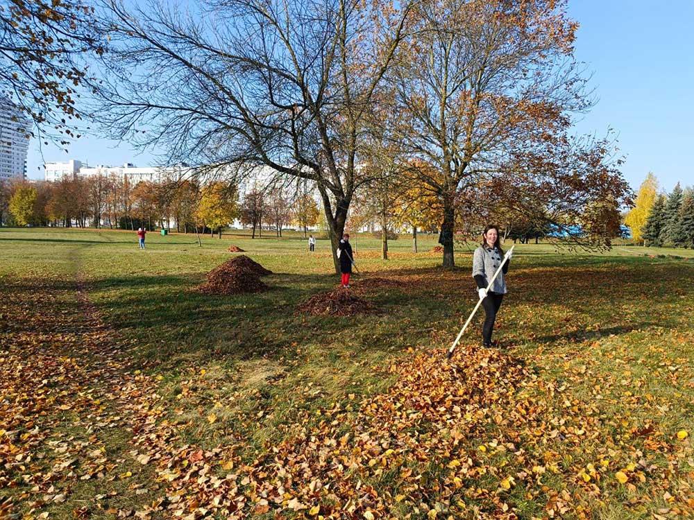Работники УП "Зеленстрой Партизанского района г.Минска" совместно с общественностью очищали от опавшей листвы следующие территории: