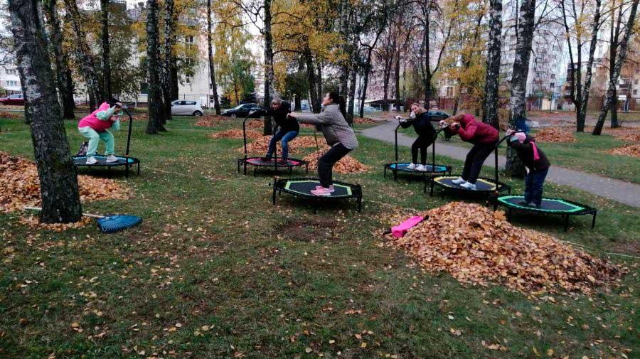 А вот субботник на соседней с парком и одноименной ул. Антоновской начался с энергичной разминки на... батутах. Именно так фитнес-тренеры решили разогреть старшеклассников гимназии № 7, пришедших помочь взрослым.