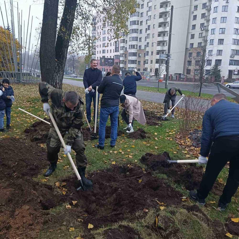 Администрация Партизанского района, сотрудники главного управления следственного комитета по г.Минску и прокуратура Партизанского района высадили 25 клёнов и 5 привитых ясеней возле знака следственного комитета в сквере им. Симона Боливара.
