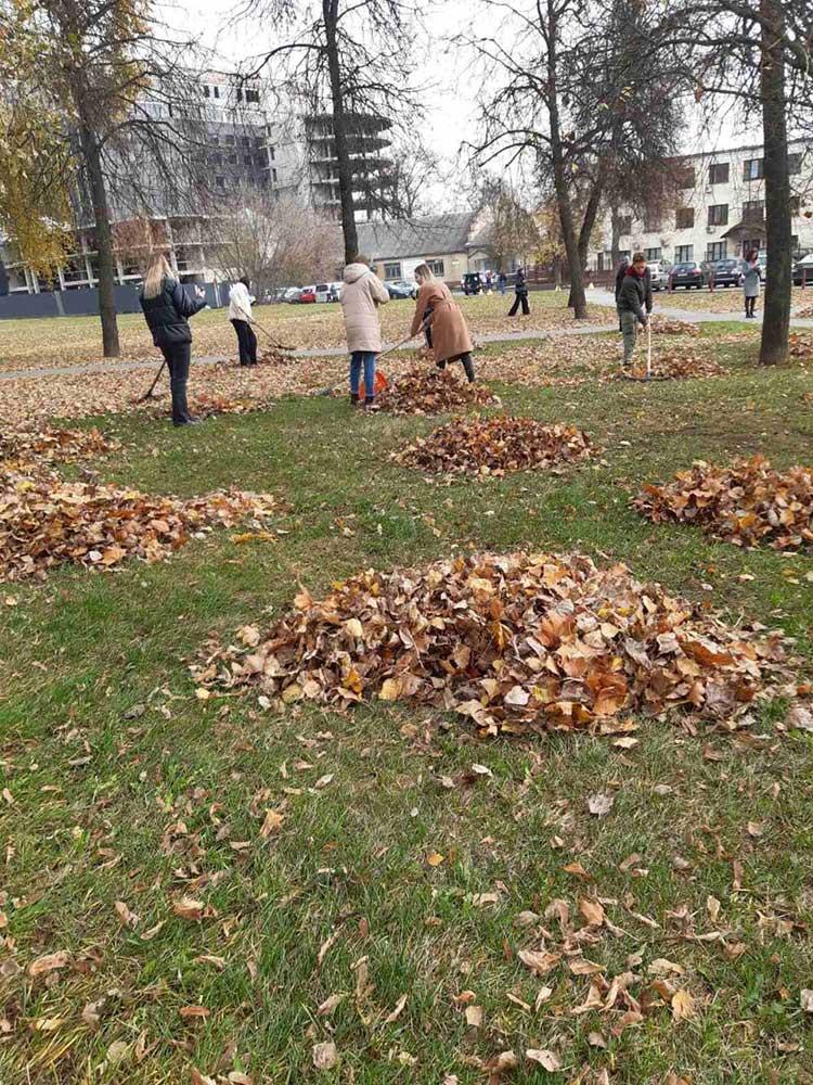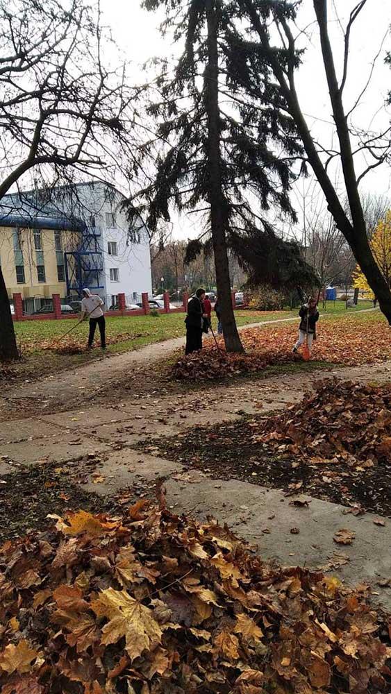 Ребята очищали от мусора и опавшей листвы сквер имени С. Боливара и озелененную территорию по улице Азгура.