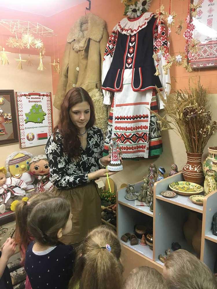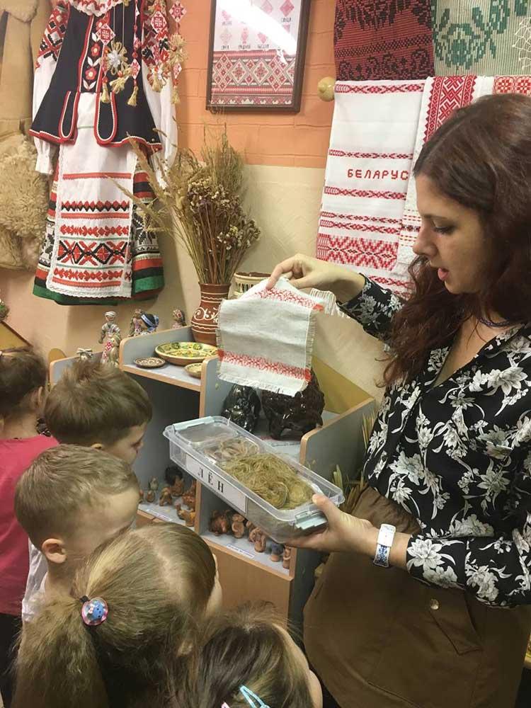 Здесь представлены изделия из соломы, льна, дерева, металла ️, глины, шерсти. Воспитатель дошкольного образования Гилевич Дарья Дмитриевна подробно рассказала ребятам об изделиях из льна: как он растёт, как обрабатывается, что из него делают и, конечно, обратила внимание на то, что изображение льна присутствует на гербе Республики Беларусь.