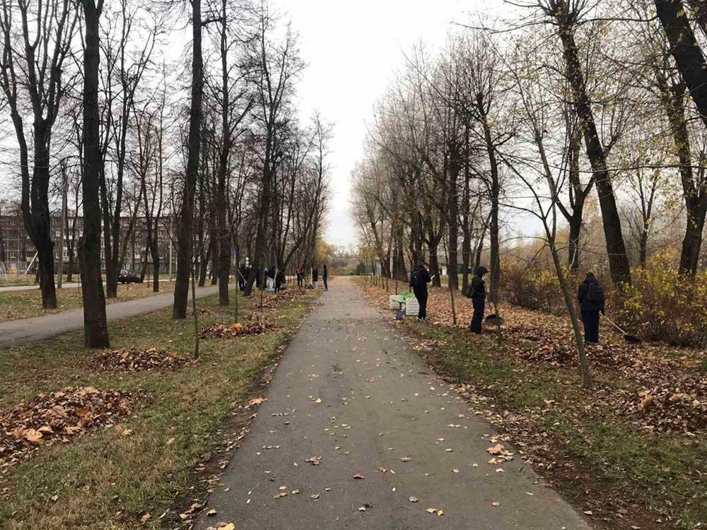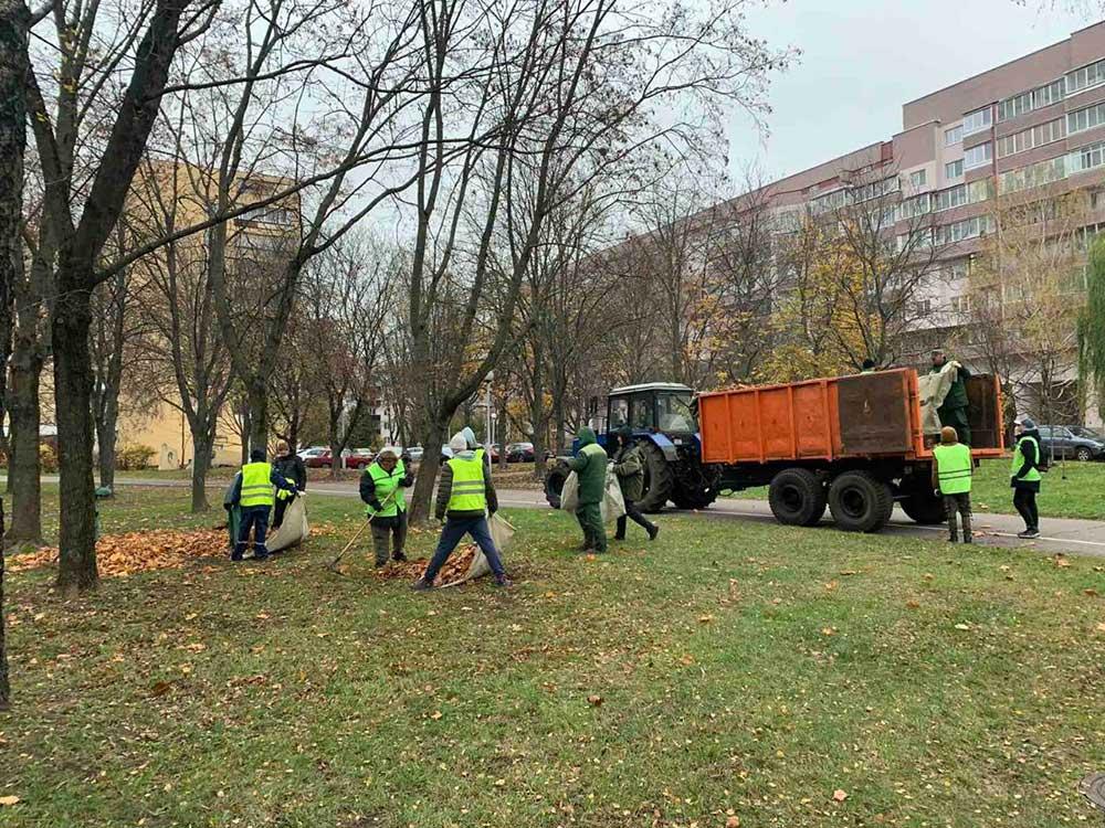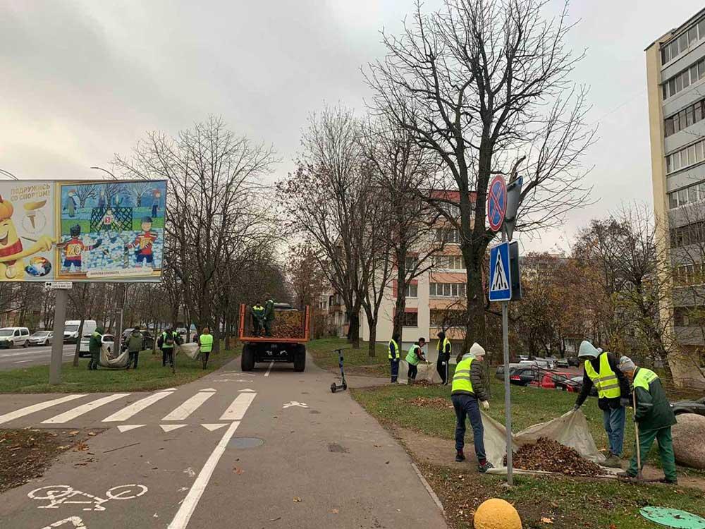 5 ноября работники УП "Зеленстрой Партизанского района г.Минска" совместно с общественностью очистили от опавшей листвы следующие территории: