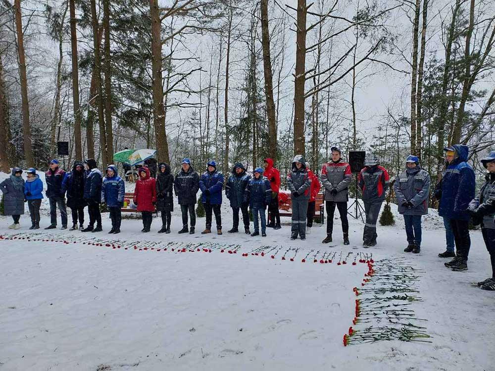 В рамках Года исторической памяти представители УП «Минскметрострой» приняли участие в реквиеме памяти, который прошел 18 ноября в урочище Ивановщина Логойского района, на месте захоронения невинных жертв Великой Отечественной войны и возложили цветы к мемориальному камню, а также вместе с другими молодыми Профсоюзными активистами строительной отрасли г. Минска и Минской области благоустраивали место захоронения и высадили аллею туй.