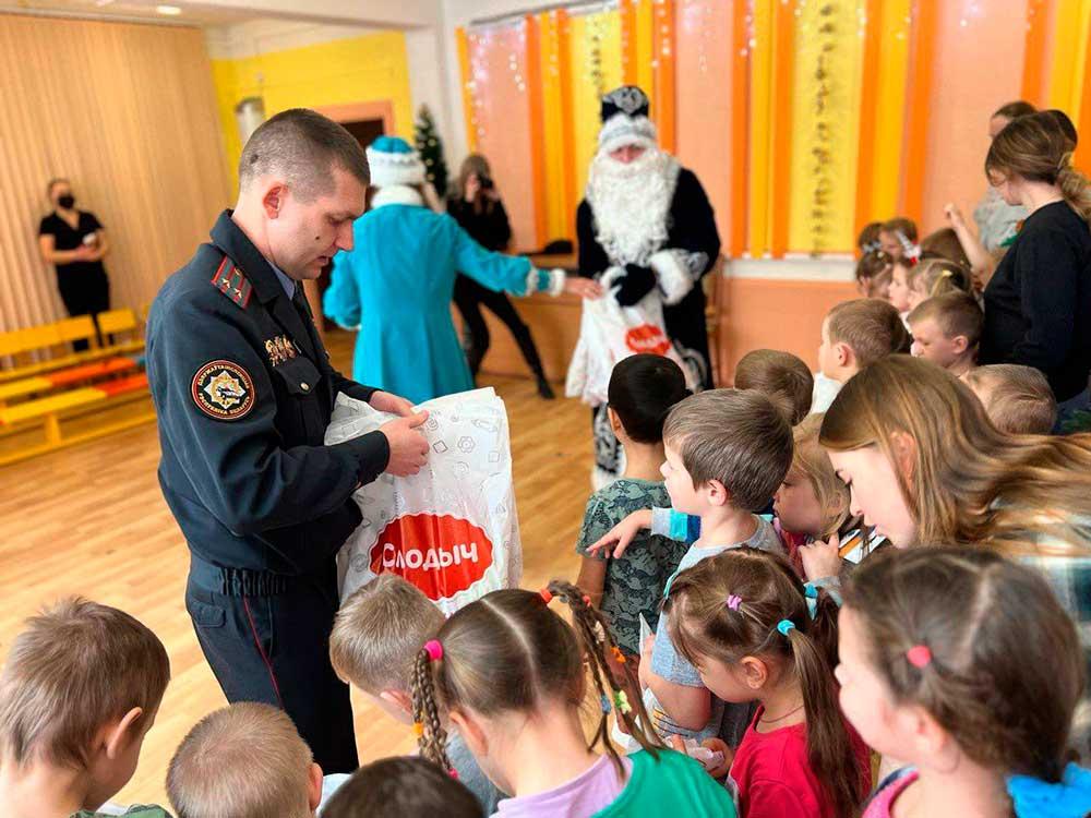 Встреча была не совсем обычной – сотрудники ГАИ пришли в гости к ребятам в роли Деда Мороза и Снегурочки, чтобы поздравить их наступающим Новым годом. Дети радостно встречали гостей, с удовольствием пообщались с ними на тему дорожной безопасности, пели новогодние песни, играли, водили хороводы и рассказывали стихи. В конце встречи воспитанникам детского сада сказочные герои во главе с начальником отдела ГАИ Партизанского РУВД вручили подарки от кондитерской фабрики «Слодыч».
