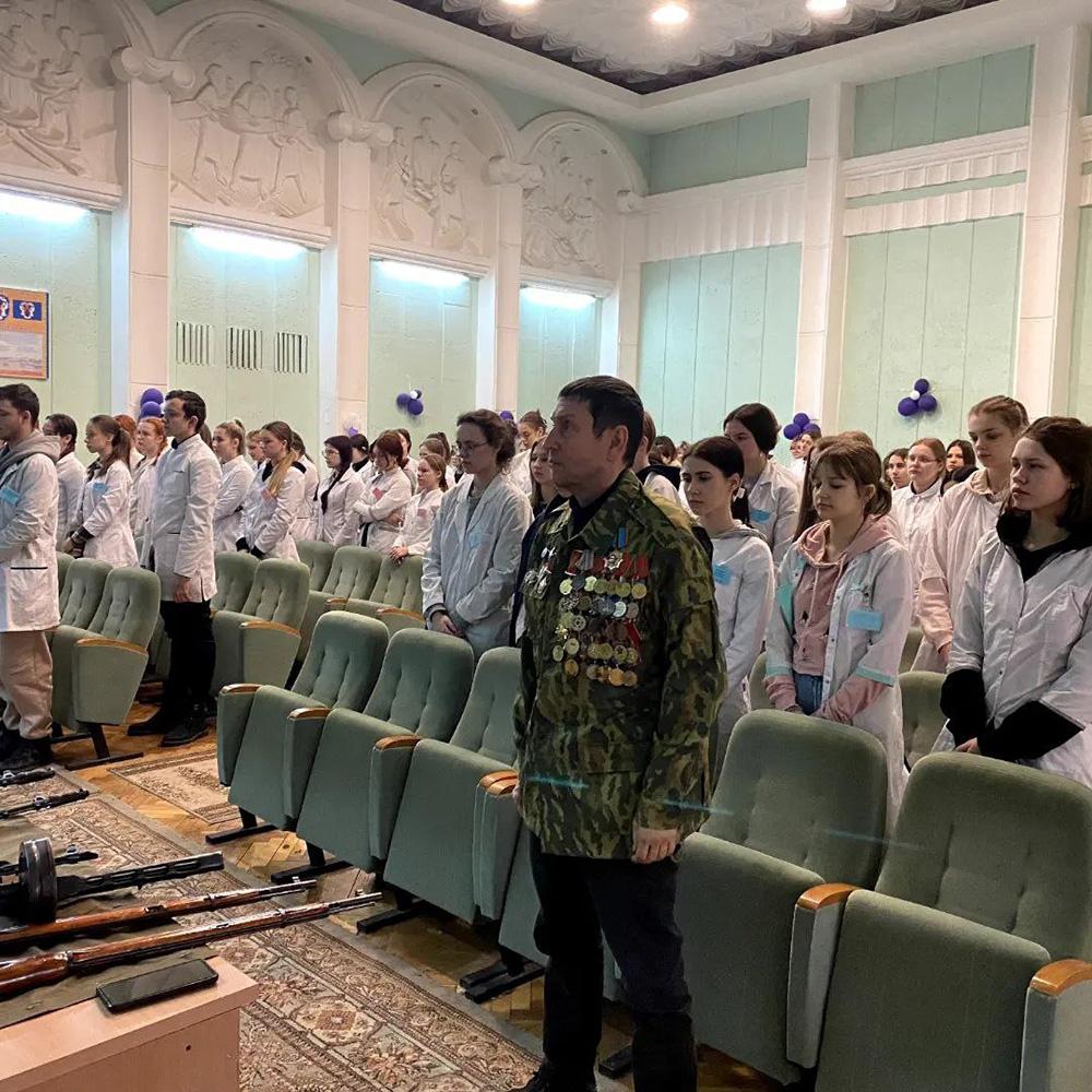 В актовом зале УО "Минский государственный медицинский колледж" 13 февраля собрались учащиеся, сотрудники, ветераны войны Афганистана, для того чтобы почтить память воинов Афганистана, тех, кто выполнял свой интернациональный долг в горячих точках планеты.