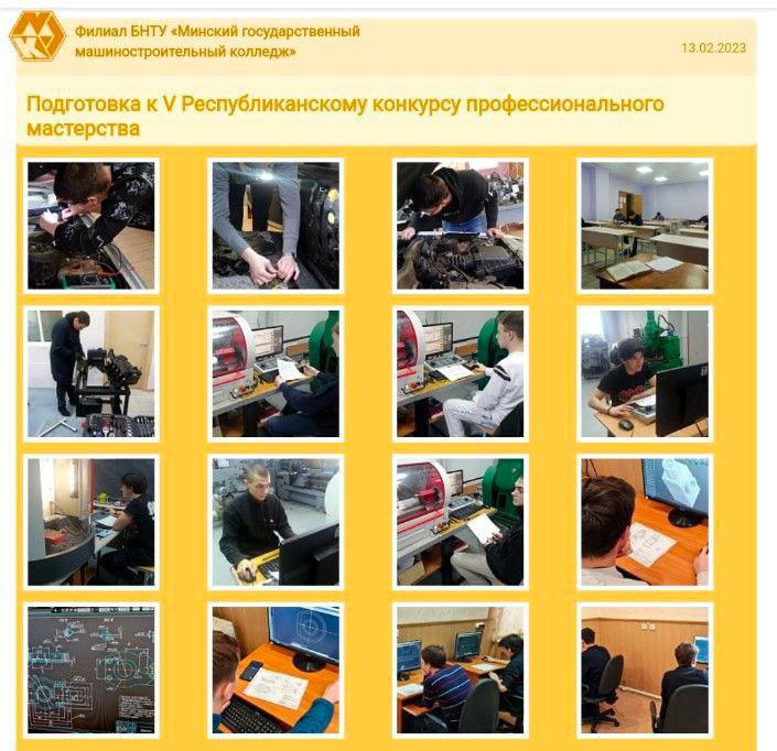 В рамках подготовки к V Республиканскому конкурсу профессионального мастерства в филиале БНТУ "Минский государственный машиностроительный колледж" прошёл отборочный квалификационный этап по компетенциям «Инженерный дизайн САD», «Токарные работы на станках с ПУ», «Фрезерные работы на станках с ПУ», «Автомобильные технологии», «Визуальный мерчендайзинг».