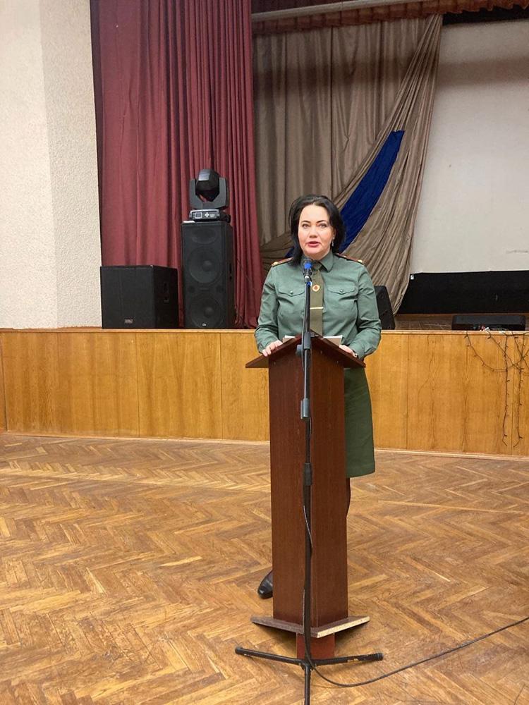 В качестве спикера на тему «Обеспечение военной безопасности – важнейший фактор развития Республики Беларусь в современных условиях» выступила подполковник Матузова Елена Алексеевна – начальник отдела призыва на военную службу военного комиссариата Партизанского района город Минска.