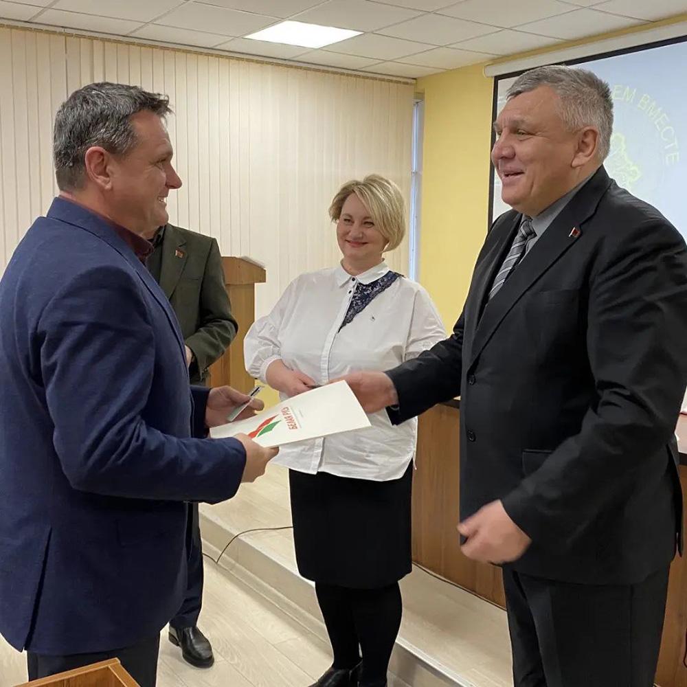 В ряды объединения приняли новых членов начальник Инспекции Виталий Киреев и председатель Партизанской «Белой Руси» Валентина Довгалёва.