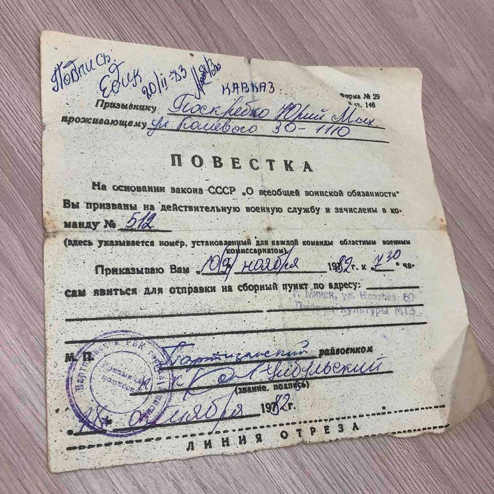 Призыв в армию - незабываемое событие для каждого молодого человека. Юрий Михайлович до сих пор хранит повестку призывника, выданную ему 18.10.1982 года. Альберт Скороход поделился своим опытом службы. В итоге пришли к выводу, что вооруженные силы - это залог мирного труда белорусского народа, залог процветания страны. Поэтому в будущем обязательно необходимо исполнить свой гражданский долг.