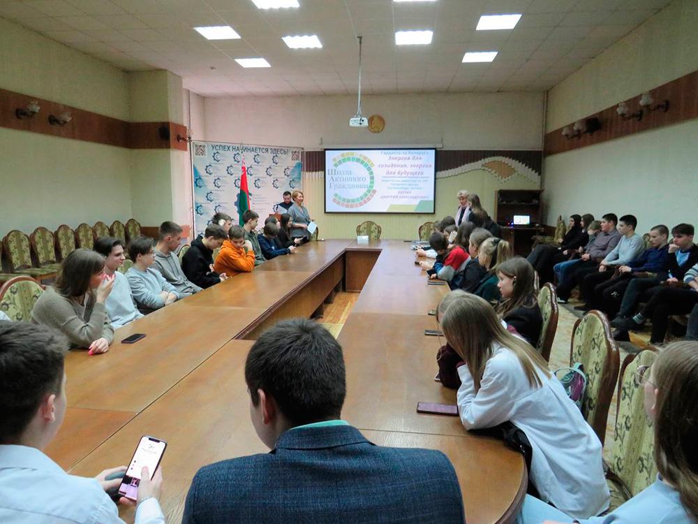 Дмитрий представил деятельность ЭкотехноПарка – Волма - межотраслевого ресурсного учебного центра в области экологии, энергетики и энергоэффективности, созданного с целью повышения функциональной грамотности и экологической осведомленности обучающихся в области энергетики, энергоэффективности, экологии, применения и распространения зеленых технологий. Участники диалога говорили об энергосистеме нашей страны, достижениях в этой области о том, что энергетика – одна из основных отраслей национальной экономики Республики Беларусь.