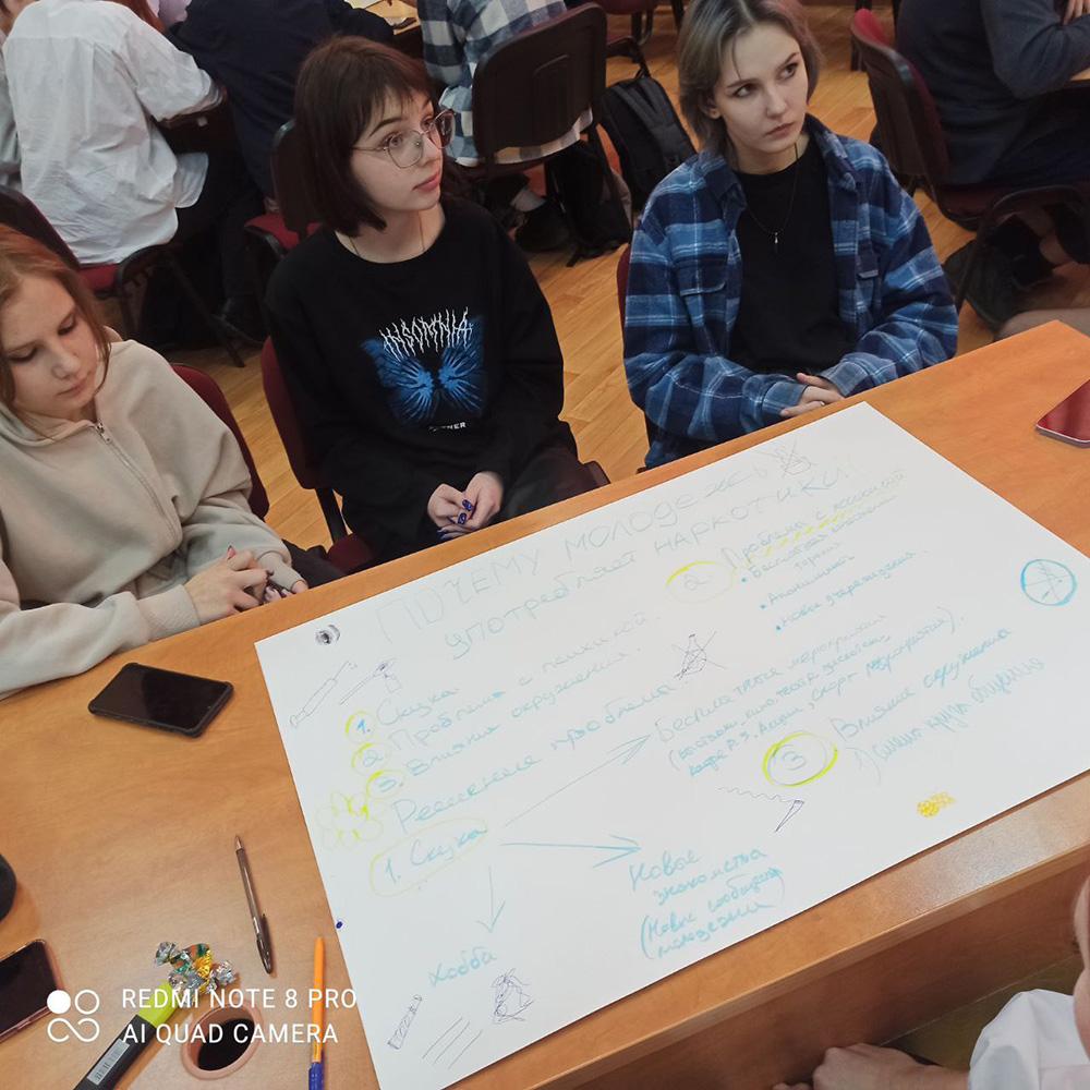 Ребята обсудили молодёжные проекты по профилактике наркомании, внесли много интересных и креативных идей, как же противостоять наркомании, какую альтернативу предложить молодежи в противовес употреблению наркотических и психоактивных веществ.