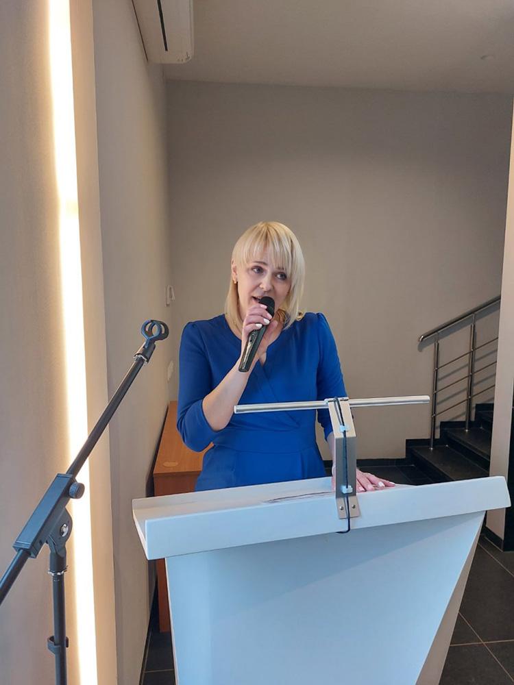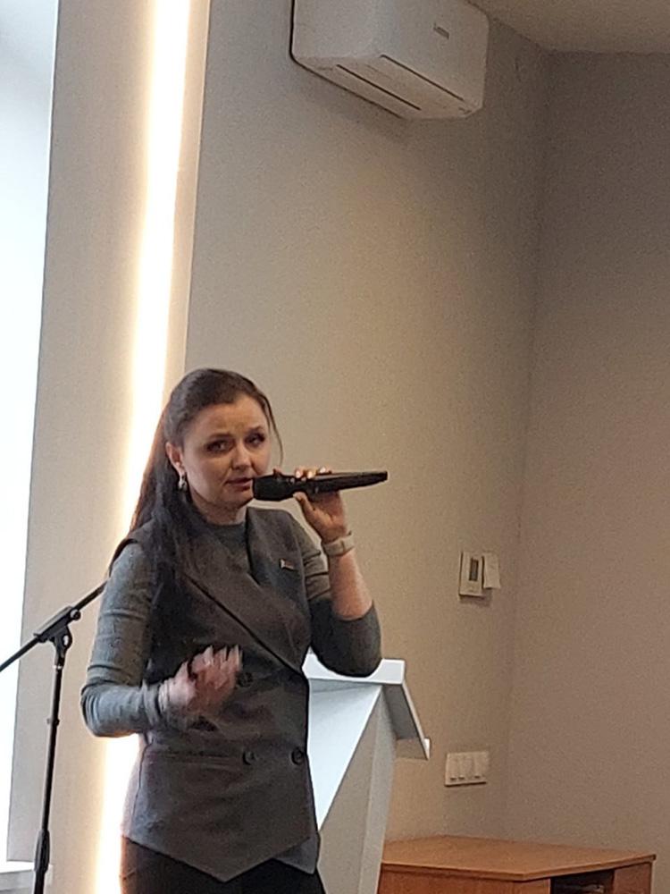 Анна Анатольевна довела делегатам конференции информацию о том, что лучшим обособленным структурным подразделением признан коллектив завода железобетонных изделий. Директор завода – Шундрик Сергей Михайлович.