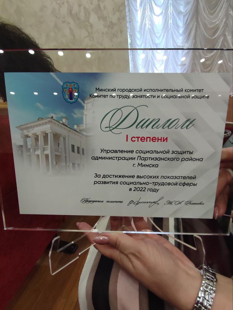 1 место – Управление социальной защиты администрации Партизанского района г.Минска