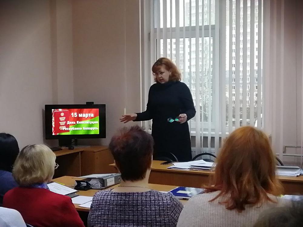 Рассказала об истории нашей Конституции, о путях совершенствования её в связи с изменениями и дополнениями, принятыми на республиканских референдумах.
