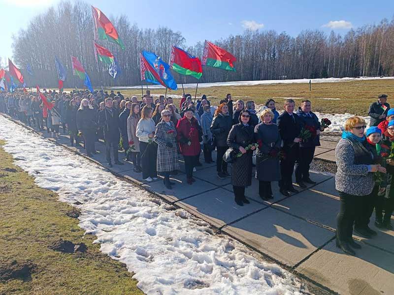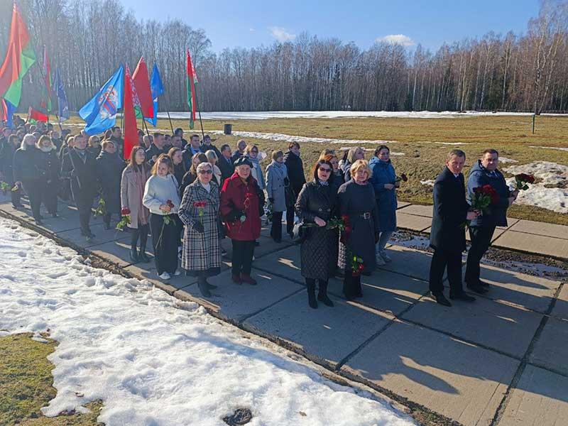 В день 80-летия Хатынской трагедии сотрудники администрации Партизанского района, члены трудовых коллективов, председатели первичных районных организаций ОО "Белорусский союз женщин" , ОО " Белая Русь" , профсоюзов возложили цветы к вечному огню в Хатыни.