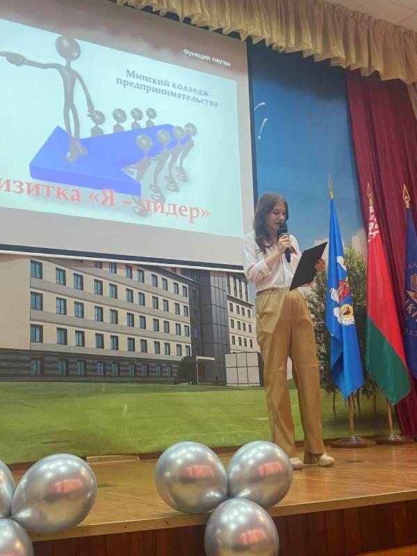 Победителем гранд-финала и обладателем титула "Лидер Минского колледжа предпринимательства - 2023" стала Анастасия Сапрыкина из группы Д-2012. Анастасия набрала 847 баллов. Победительнице вручен главный приз конкурса от администрации колледжа, а также специальный приз от Республиканского молодежного центра (Moladz.by) за экологическую деятельность.