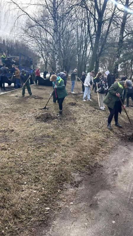Работники УП "Зеленстрой Партизанского района г.Минска" совместно с общественностью убирали от мусора и прошлогодней листвы сквер по ул. Долгобродской и бульвар Пулихова в границах ул. Пулихова, ул. Первомайской, р. Свислочь. Была убрана территория площадью 10 га, вывезено 18м3 мусора.
