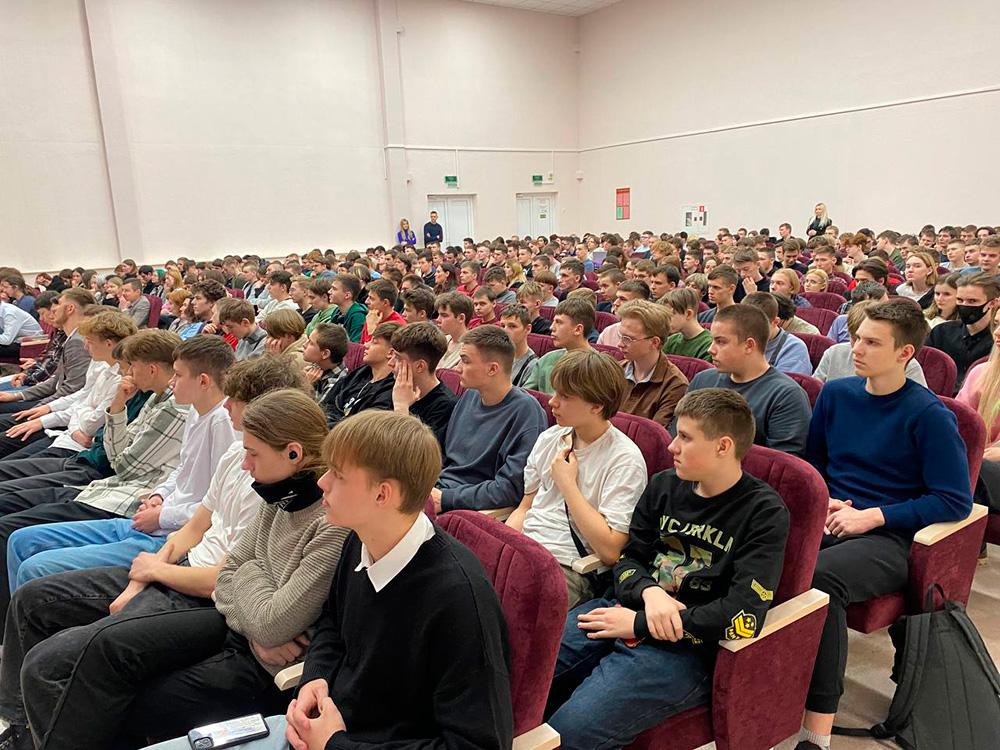 Атмосфера в зале машиностроительного колледжа царила любознательная. Свободных мест не было. Ребята с интересом слушали о том, как работает завод, какие перспективы дает работникам, из чего состоит сложный механизм производства промышленного гиганта.