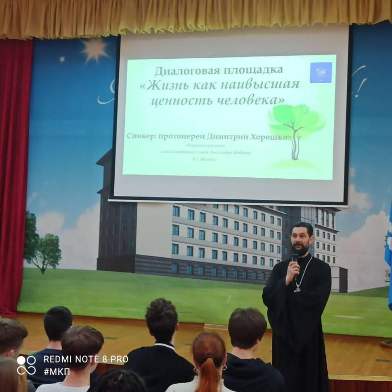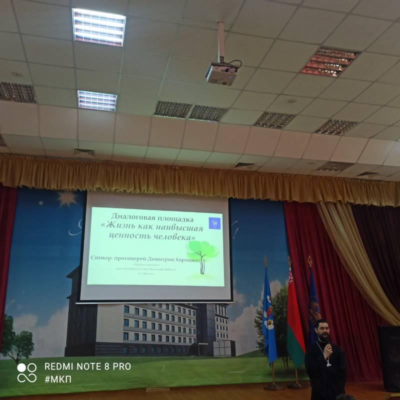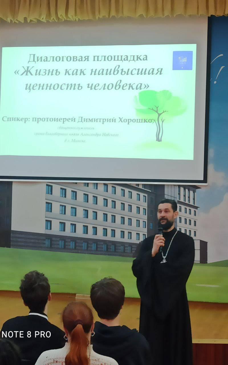 В Минском колледже предпринимательства прошел молодёжный диалог на тему "Жизнь как наивысшая ценность человека" с протоиереем Димитрием Хорошко, священнослужителем храма благоверного князя Александра Невского.