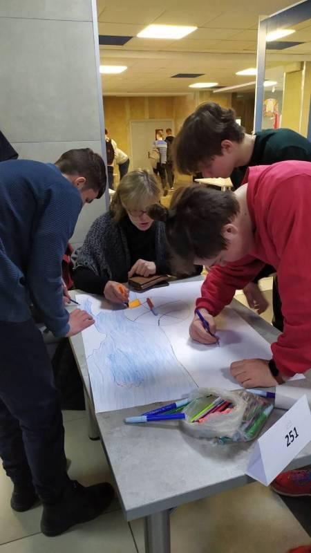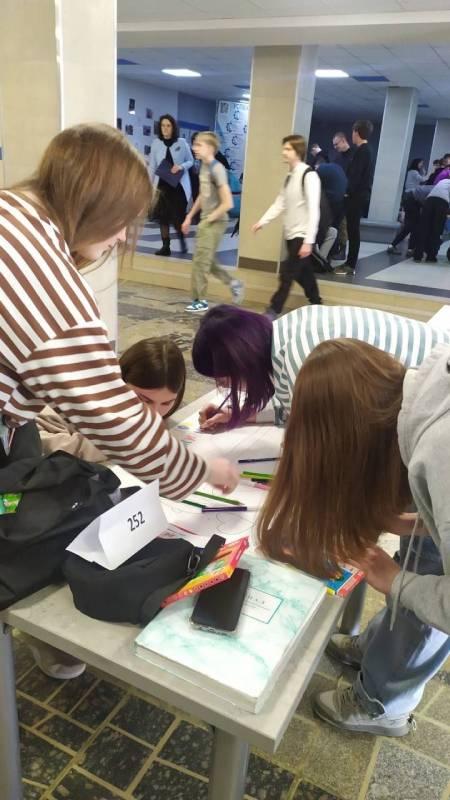 На второй перемене прошел Арт-челлендж -это рисование одновременно большого количества людей, совместное творчество, выполненное в различных техниках.